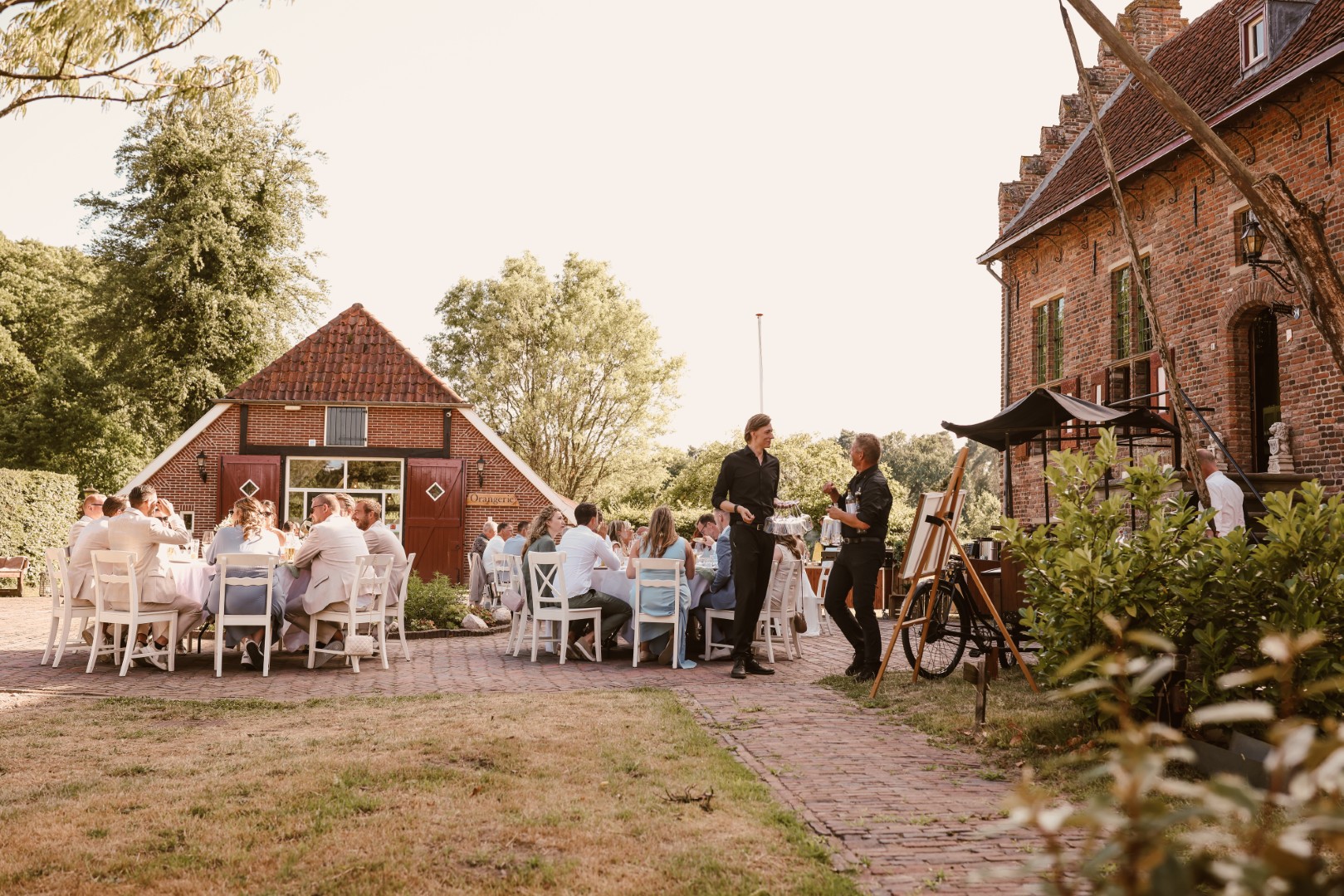 Voor een nog grotere buiten setting kan het terrein worden omgetoverd tot een avondfestival. Denk aan lichtslingers, verschillende kleine muziek- of loungehoekjes, food stations en een ongedwongen sfeer waarin gasten vrij kunnen rondlopen en genieten. De boomgaard, het grasveld en de ruimte rondom het kasteel vormen samen een decor dat uitnodigt tot een lange, zomerse avond waarin iedereen zijn eigen moment kan vinden.
